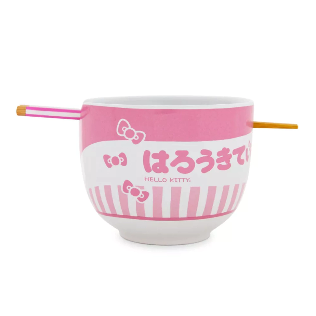 Nuestro tazón de cerámica para ramen modelo Hello Kitty, con palillos tiene capacidad para 20 oz de tus fideos favoritos.