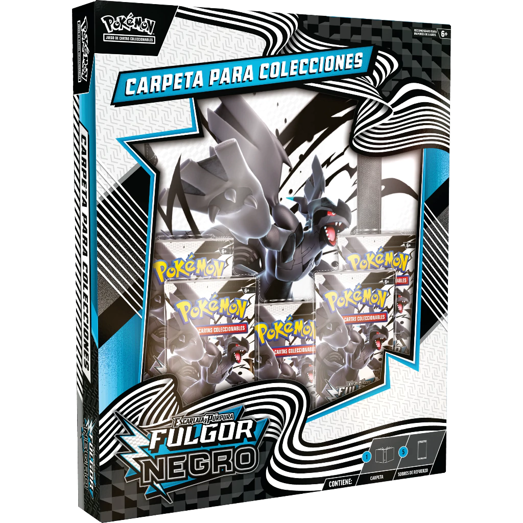 Cada colección de carpetas de Escarlata y Purpura: Fulgor Negro y Escarlata y Purpura: Llama Blanca de JCC Pokémon incluye: