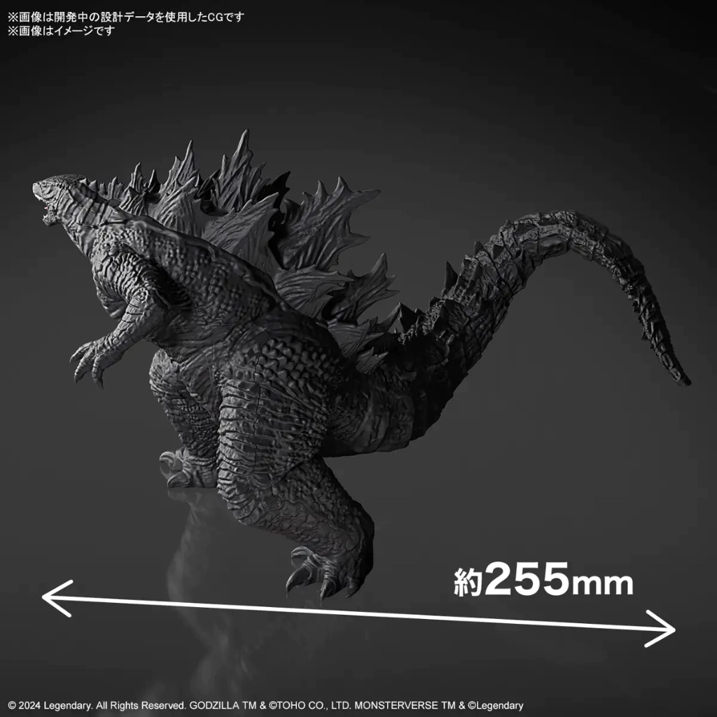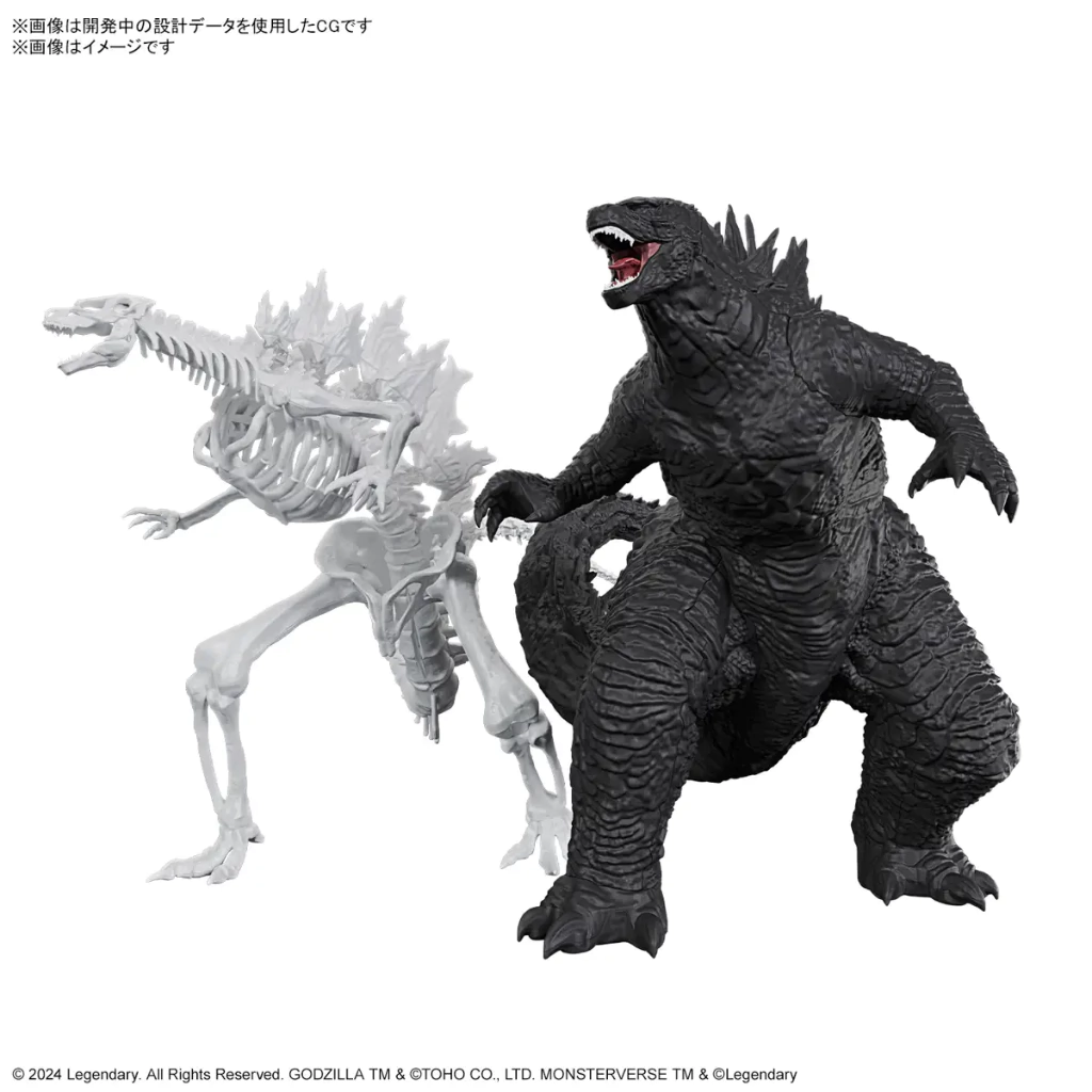 El nuevo modelo de Bandai del poderoso Godzilla, tal como apareció en la película de 2024 "Godzilla x Kong: El Nuevo Imperio", incluye un esqueleto diseñado por Shinji Nishikawa, quien ha participado en numerosas películas de "Godzilla" en cuanto a diseño de monstruos y mechas, ¡y un exoesqueleto inspirado directamente en la película! Este modelo de exhibición cuenta con una estructura esquelética detallada y un exoesqueleto orgánico de alta densidad. Puedes elegir entre dos métodos de exhibición: colocar el esqueleto dentro del cuerpo o colocarlo junto a él. Las ondulaciones óseas dinámicas del esqueleto se expresan para adaptarse a la pose, y la forma realista de los huesos se recrea con gran atención al detalle. Las ondulaciones naturales del cuerpo de Godzilla se reproducen desde la punta de la cara hasta la punta de la cola; el exoesqueleto está diseñado para que las costuras de las piezas, exclusivas de los modelos fijos, sean menos visibles. Su boca está codificada por colores con la división de las piezas, y la articulación de la aleta dorsal está hecha de piezas transparentes. Se incluyen dos tipos de postes de soporte para sostener el cuerpo grande.