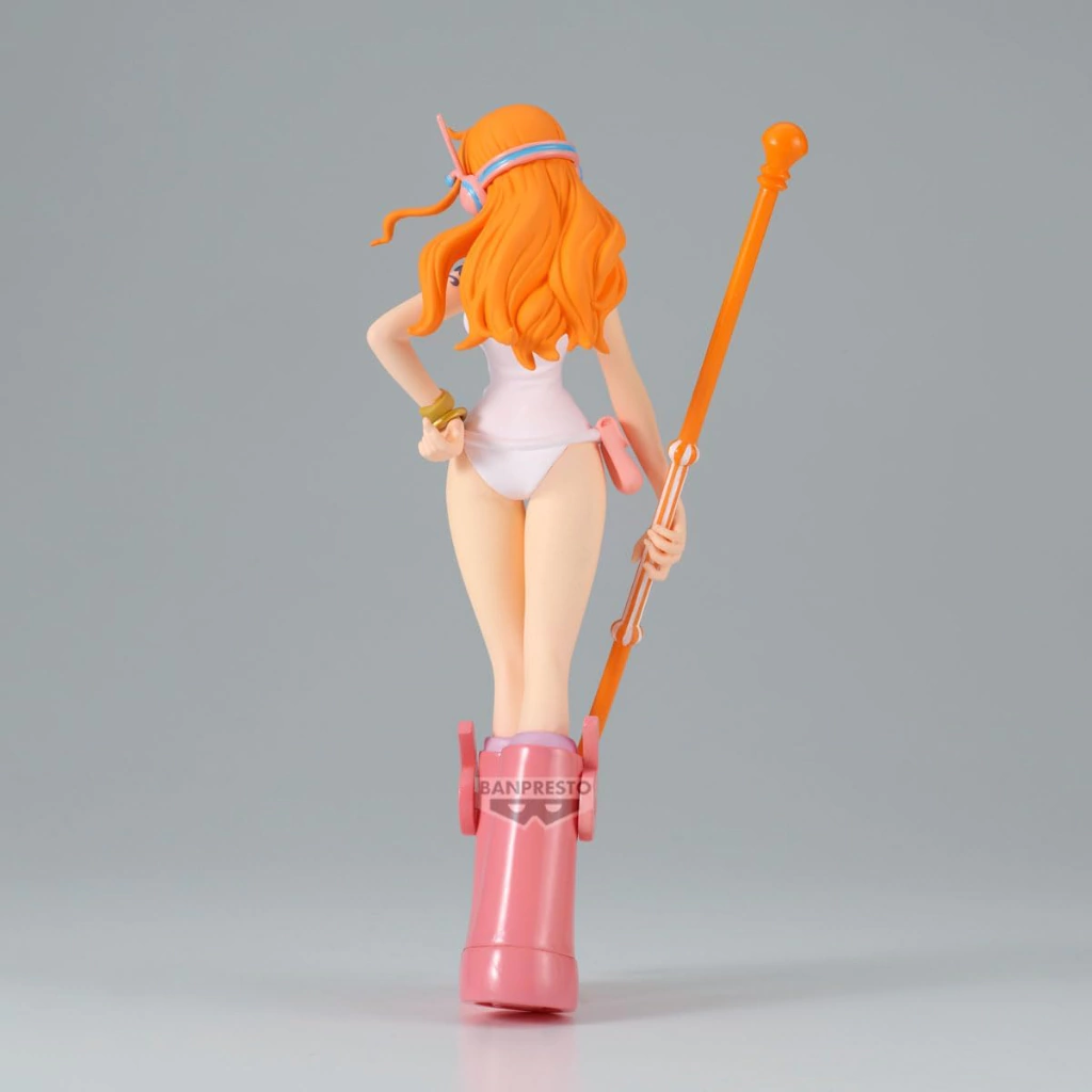 De One Piece la figura coleccionable Nami The Shukko (Egghead Ver.), destaca por su diseño detallado y pose dinámica; fabricada en PVC de alta calidad, mide aproximadamente 18 cm y es ideal para fans y coleccionistas de la serie.