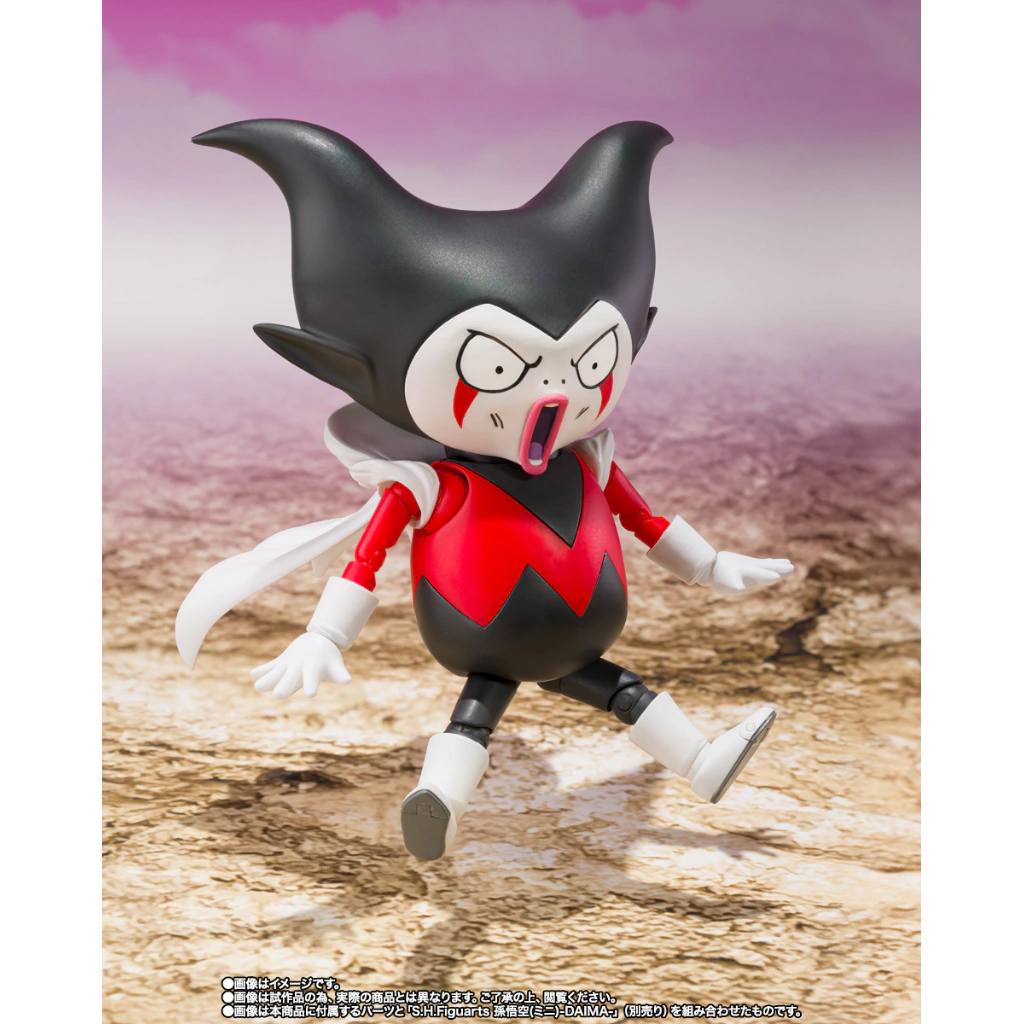 ¡El Rey Gomah de Dragon Ball DAIMA se une a la serie SHFiguarts! Con sus 75 mm de tamaño, gracias a las partes móviles y a la variedad de materiales con que se ha realizado, ¡esta figura tiene una posabilidad increíble! ¡Gracias a la articulación móvil en la nuca de la capa y a las partes flexibles, incluso puede posarse mirando hacia arriba! En total, se incluyen cinco caras: sonriente, fulminante, con los dientes apretados, riendo y sorprendida. ¡Realmente puedes disfrutar de toda la gama de emociones de Gomah! ¡Incluye tres piezas de Nyoibo , que se pueden usar con la figura SHFiguarts Son Goku (Mini) -DAIMA- (se vende por separado)! Mide aproximadamente 7.5cm