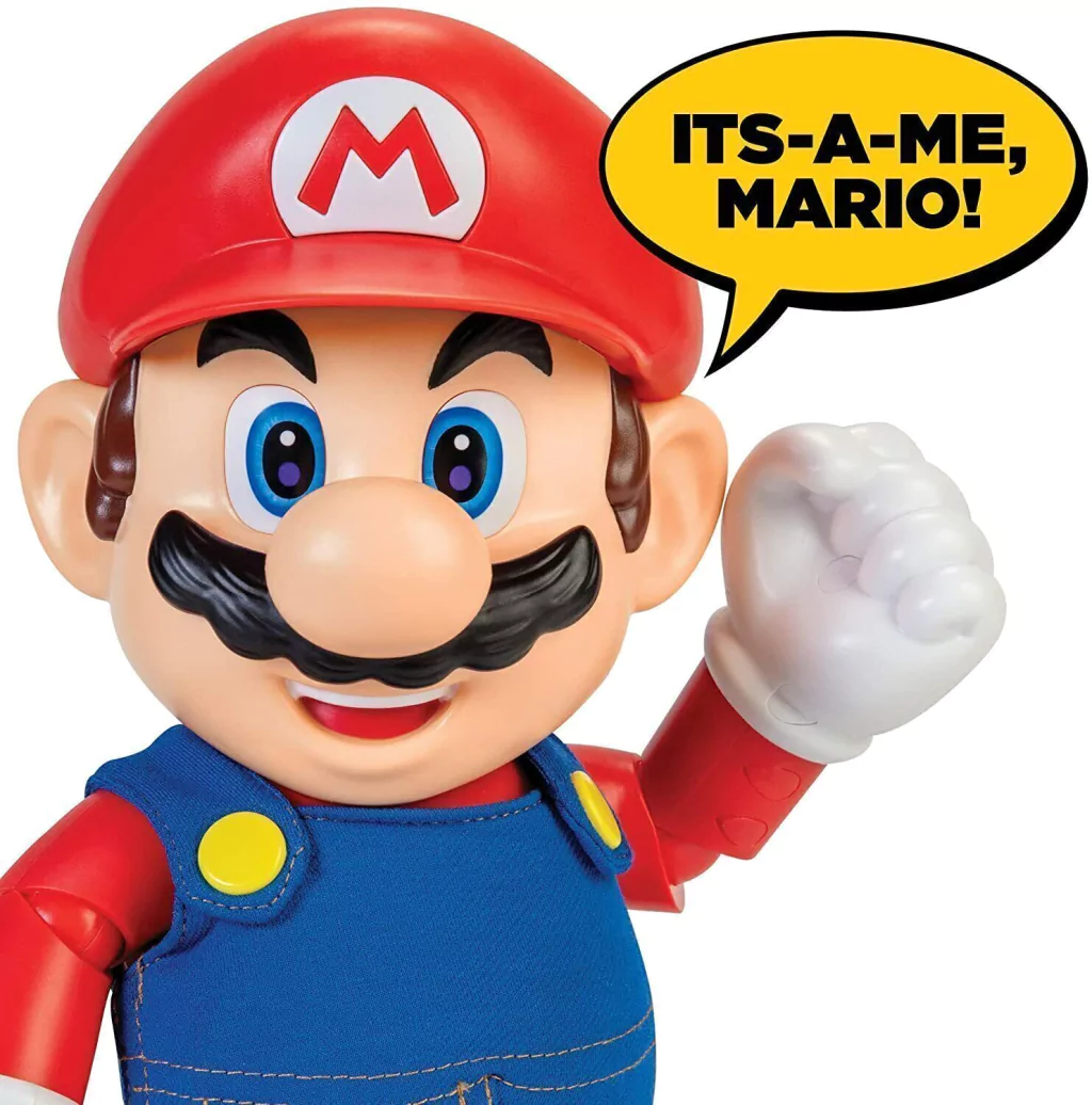 Dale vida a Super Mario con la figura definitiva, It's-A-Me, Mario! Los niños de todas las edades se divertirán sin fin con el Mario de 30 centímetros de alto equipado con más de 30 frases y efectos de sonido de los juegos. Incluye la voz de Mario con frases icónicas como ¡Woo-Hoo!, It's-A-Me, Mario! Y muchos otros.