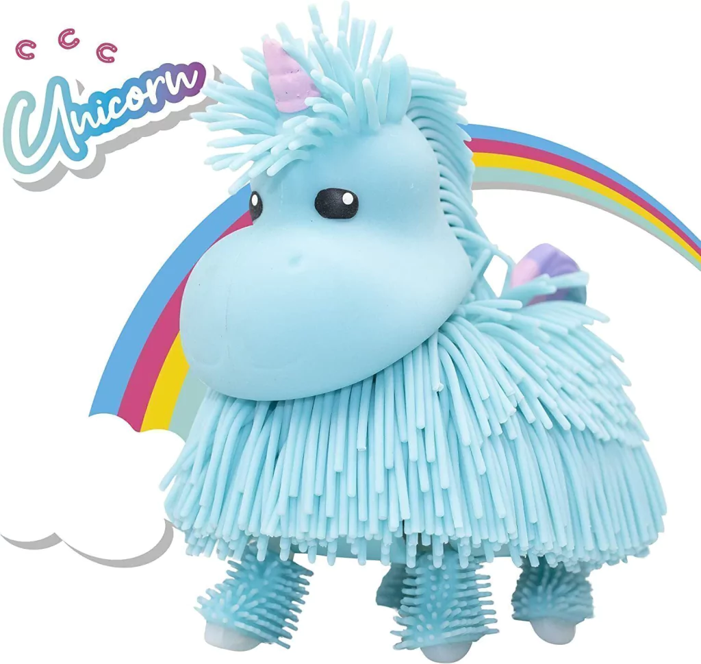 ¡El unicornio que camina más bonito! Presiona su cabeza para que camine, se sacuda y mueva sus brazos mientras suena una canción pegajosa. Diviértete con tu amigo musical de color azul. Mide aproximadamente 15cm.