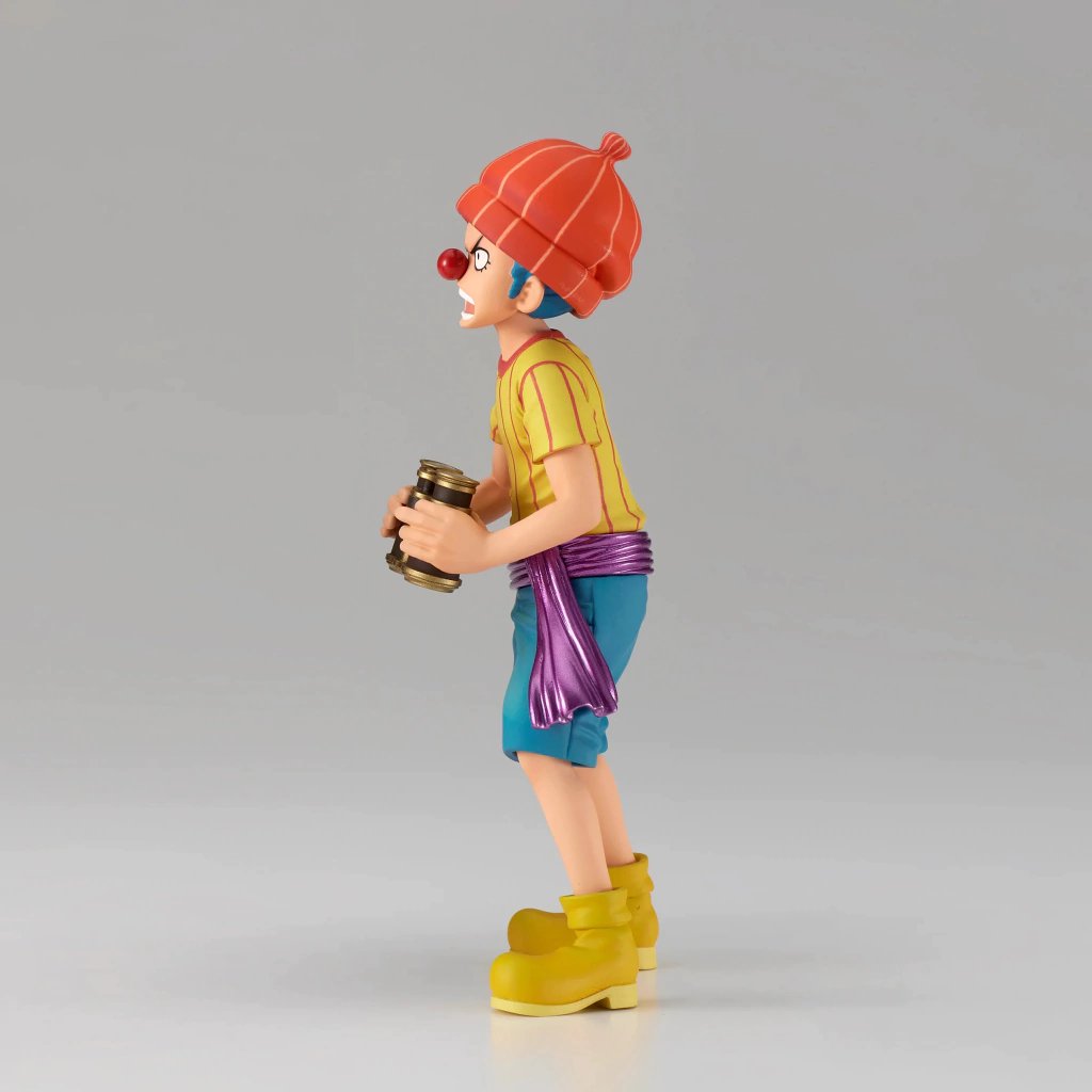 El capitán de los piratas de Buggy, llega como parte de la línea Grandline Children de Banpresto en esta figura especial, Buggy esta presentado con su aspecto de niño, con una camisa a rayas y pantalones cortos, además de su característica nariz roja y sosteniendo unos binoculares, mide aproximadamente 13cm.