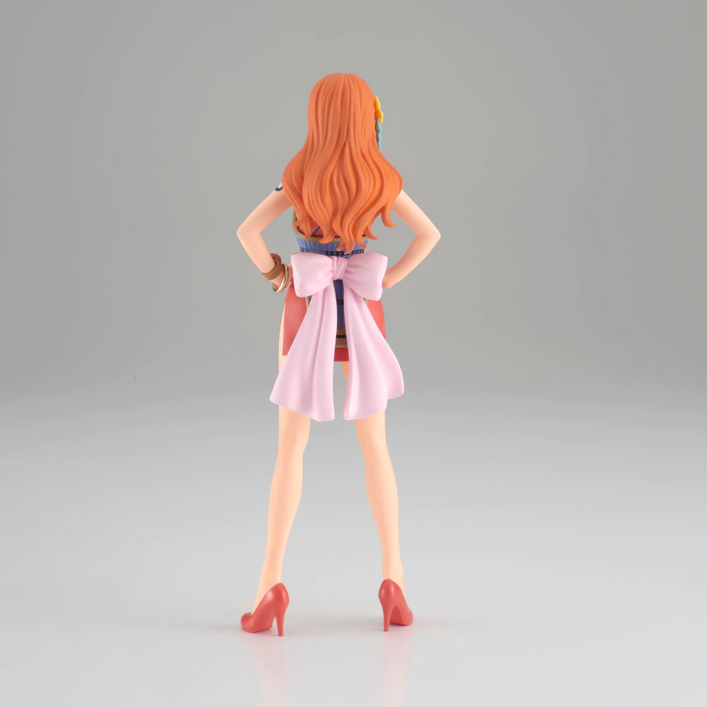 La navegante de la tripulación de Luffy, Nami, llega en esta figura de la línea "Grandline Lady" de Banpresto, esta figura altamente detallada esta basada en el arco de Wano con su vestuario de color rosa con flores azules. Mide aproximadamente 16cm.