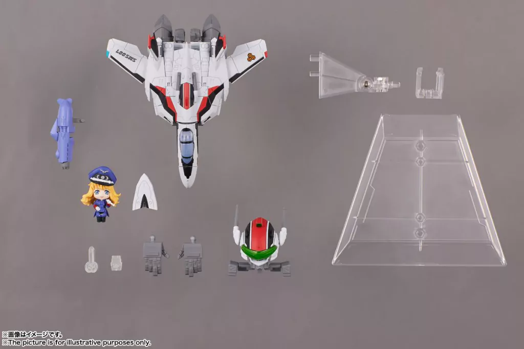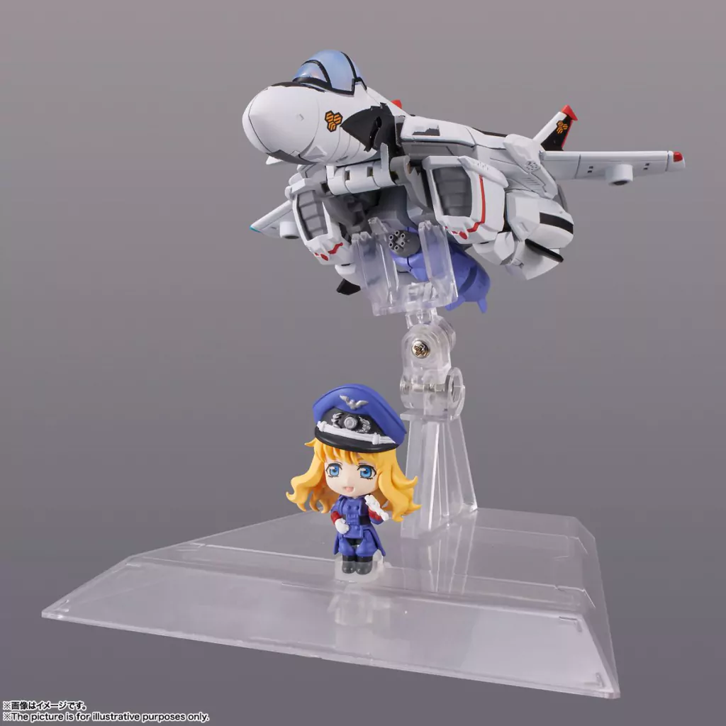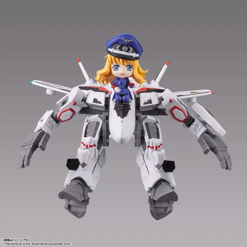 "Tiny session" combina personajes y mecha chibi en una nueva e innovativa linea de figuras. La VF-25f MESSIAH VALKYRIE (alto USE) con sheryl de macross f son los primeros en llegar a la linea. la mini figura de Sheryl presenta un diseño original del personaje y la messiah valkyrie presenta 3 estadios de transformación. Mide aproximadamente 10cm.