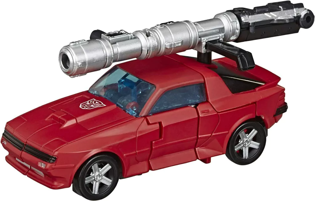 De la trilogía de Transformers la Guerra por Cybertron, la figura de CliffJumper se convierte en el modo clásico de coche G1 en 18 pasos y viene con un accesorio de arma. Mide aproximadamente 14cm.
